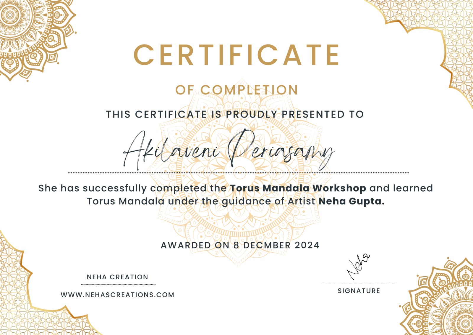I Akilaveni Periasamy, started working on myself with my mentor Maalica Ravikumar in 2024.